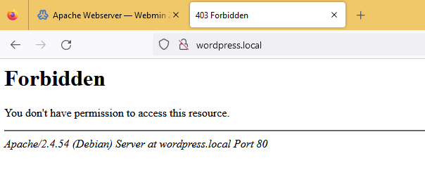 Windowsból firefox-ban már megnyitható az oldal, de, mivel nincs még fájl a webhelyen, ezért az apache alapértelmezetten nem engedélyezi a a hozzáférést.