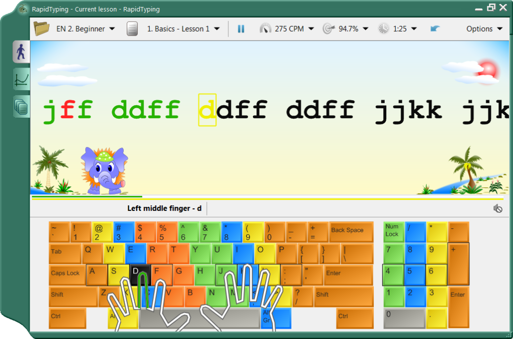 A RapidTyping egy ingyenes és könnyen használható gépelés tanulására szolgáló szoftver, amely segít fejleszteni a felhasználók gépelési sebességét és pontosságát. A program különféle gyakorlatokat kínál, amelyek lehetővé teszik, hogy a felhasználók megtanulják gyorsan és hatékonyan gépelni anélkül, hogy ránéznének a billentyűzetre, a gépelés vak módjában (touch typing).